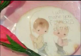 When I turned five, my bi sister gave me a Precious Moment badge. At first, I didn’t like it because it was a picture of little boys, and the girly girl in me was not a fan. However, over time, I loved the message that came with the picture, “I will make you fishers of men.” I intentionally wore it every day as a conversation starter about Jesus until, unfortunately, it was ruined in the washing machine.